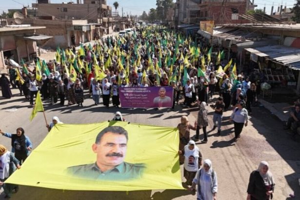 Bi hezaran jinên ku Komploya Navneteweyî ya li dijî Rêber Apo şermezar kirin, bi dirûşmeya “Azadiya fîzîkî ya Rêber Apo kilîda çareserî û aştiyê ye” meşiyan.