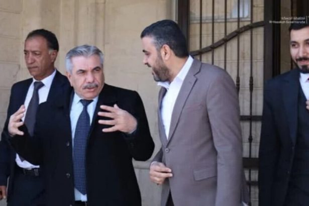 Fermandarê Hêzên Ewlekariya Hundirîn (Asayîş) Mehmûd Xelîl Elî tevî fermandarê Ewlekariya Hundirîn Merwan El Elî bi şandeya hikumeta demkî ya Sûriyeyê ya bi serokatiya gerînendeyê deriyên bejahî û deryayî re…