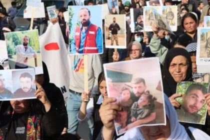 Dost û malbatên dîlgirtiyên ku ji aliyê hikûmeta demkî ve hatine girtin li ber avahiya…