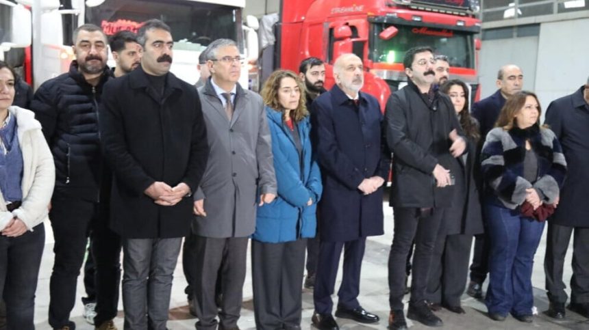 25 qemyonên alîkariyê ku bi pêşengiya Platforma Parastin û Hevgirtinê ya Bajarê Amedê di çarçoveya “Kampanya Alîkariyê Ji Bo Kobanê” hatibû destpêkirinku hatin barkirin û ji bo gihandina Kobanê ji Amedê bi rê ket. Di nav alîkariyê de av, paç û şîrê pitikan, berhemên paqijiya jinan, betanî, alavên germkirinê, nivîn û pêdiviyên xwarinê hebûn.