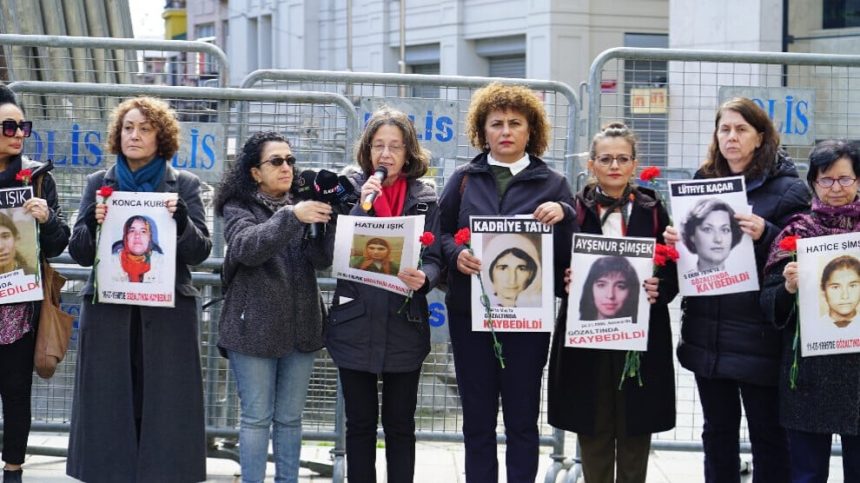 Oya Ersoy diyar kir ku sibe 8’ê Adarê ye û got: “8’ê Adarê tê wateya têkoşînan jinan ya wekhevî û azadî û edaletê. Ji bo me jî heman demê roja bîranîna jinên di binçav de hatine windakirin e. Li gorî daneyên me li Tirkiyeyê 19 jin û zarokekê 3 salî di binçav de hatiye windakirin. Ji wan jinan tenê 4 jinê ku piştî îşkenceyê hatine veşartin hate dîtin. Aqûbeta kesên din nayê zanîn. Em bi salan e dibêjin; polîtîkayên bêcezahiştinê ya dewletê tundiyê li ser civakê jî zêde dike. Li piştî kuştin û tundiya li ser jinê jî ev hişmendî heye. Em di 8ê Adarê de ne tenê jinên îro, jinên bi zorê di nav me de hatine derxistin jî bibîr tînin. Em dizanin ku bîr nayê bêdengkirin.”