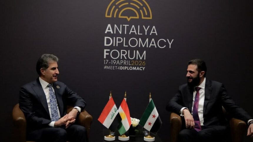 Serokê Herêma Kurdistanê ya Federe Nêçirvan Barzanî û Serokkomarê Demkî yê Sûriyeyê Ahmed el Şara li Antalyayê li hev rûniştin.