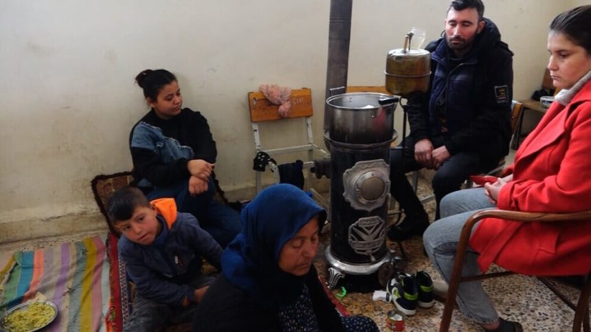 Ebdû Xalid Derwîş ku bi 9 zarokên xwe li avahiya dibistanê li erdê dimîne got, "DAÎŞ û OSO'yê êriş kirin, berê çekê da me hemûyan. Em nizanin bê xizmên me mirin e yan jî sax in. Ji bo em nan ji zarokan bikirin pereyê me nîne."