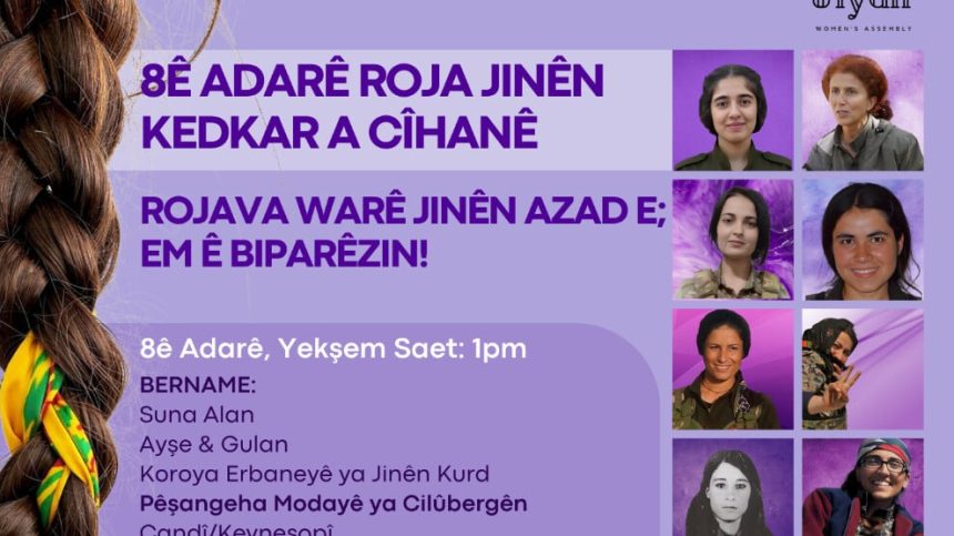 Meclisa Jinan a Jiyan ji bo 8’ê Adarê bernameyek berfireh ku tê de pêşandana fîlman, meş û çalakiyên çandî û hunerî hene amade kir. Bernameyê bal kişand ser yekîtiya jinan, parastina nasnameya çandî û hevgirtina navneteweyî.