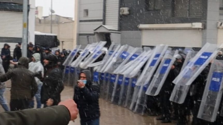 Bi deh hezaran kesên ku bi pêşengiya Platforma Saziyan a Demokratîk ji bo protestokirina êrîşên çeteyên HTŞ, DAÎŞ û Tirkiyeyê li ser Rojavayê Kurdistanê li navçeya Pirsûs a Rihayê kom bûn, xwestin ber bi sînorê Kobanê ve bimeşin. Polîsan bi bombeyên gazê êrîşî girseya ku ji Qada Cumhuriyetê dest bi meşê kirin, kir.