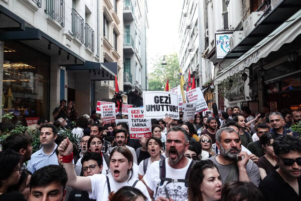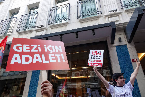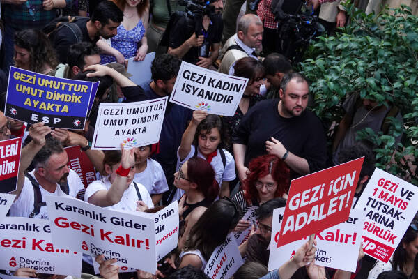 Piştevaniya Taksîmê bi boneya 11’emîn salvegera Berxwedana Geziyê li Beyoglûyê daxuyaniyek da.Bi sedan kes tevlî çalakiyê bûn. Hevseroka Giştî ya Partiya Wekhevî û Demokrasiyê ya Gelan (DEM Partî) Tulay Hatîmogûllari û parlamenterên din yên partiyên siyasî, dayika Berkîn Elvan yê di Berxwedan Geziyê de hat qetilkirin, Gulsum Evlan û gelek rêxistinên jinan û civaka sivîl tevlî bûn.
