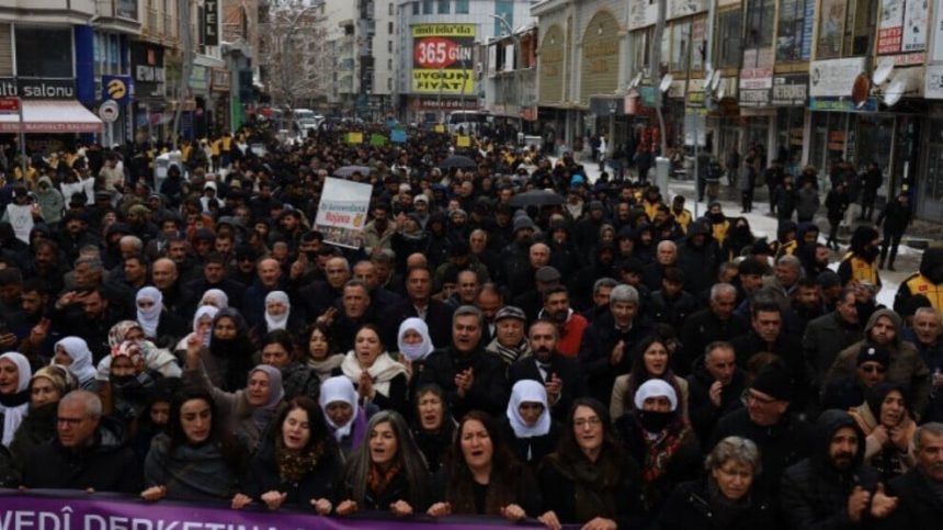 Girseya gel li Parka Kûrtûlûş li hev civiya û bi pankart û dowîzan hate qada Beşyolê meşiya.
