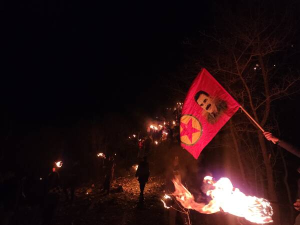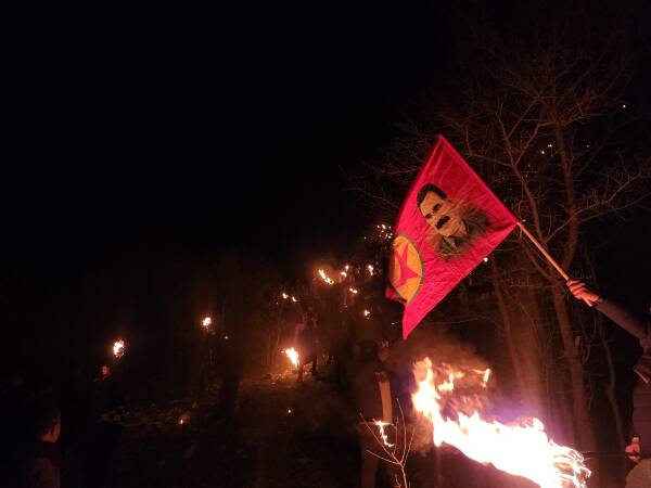 Bi sedan ciwanên Kurd wekî her sal bi meşaleyan li Qendîlê meşiyan û agirê Newroza îsal vêxistin. Ciwanan bi agir “Apo” nivîsandin. Di meşê de ciwanan bê navber dirûşmeyên dilsoziya bi Rêber Apo re berzkirin.