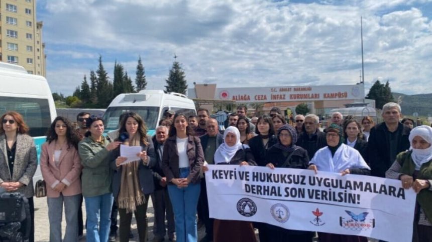 Ji bo binpêkirinên mafan ên li Girtîgeha Girtî ya Jinan a Îzmîrê ya li Alîagayê bi dawî bibin, li ber girtîgehê daxuyanî hate dayîn.