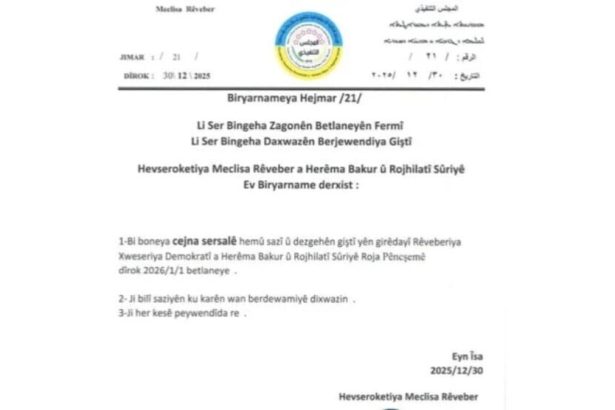 Rêveberiya Xweser a Bakur û Rojhilatê Sûriyeyê ragihand ku 1'ê Çileyê kiriye betlaneya fermî.