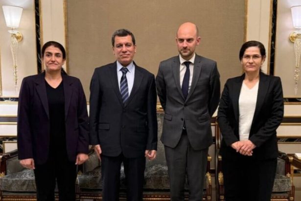 Wezîrê Karên Derve yê Fransayê Jean Noel Barrot bi Fermandarê Giştî yê QSD’ê Mazlûm Ebdî, Hevseroka Daîreya Pêwendiyên Derve ya Rêveberiya Xweser Îlham Ehmed û Fermandara YPJ’ê Rohilat Efrîn re…