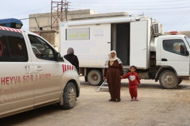 Heyva Sor a Kurd çû serdana malbatên Koçber ên li Kobanê û ew tedawî kirin.
