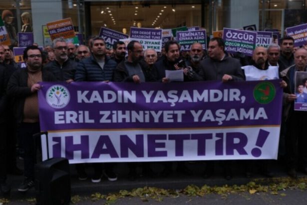 Bi wesîleya 25’ê Mijdarê li Amedê mêran daxuyanî dan çapemeniyê û nerazîbûn nîşanî tundiya li ser jinê dan.
