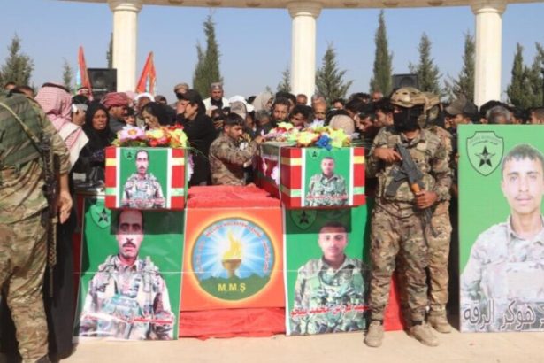 Cenazeyên 2 şervanên Hêzên Komandos ên girêdayî QSDˋê şehîd Şaban Ebid El Şahadê û Firas Mihemed El Bîco li goristana şehîdan a bajarokê Hikumiyê hatin veşartin.