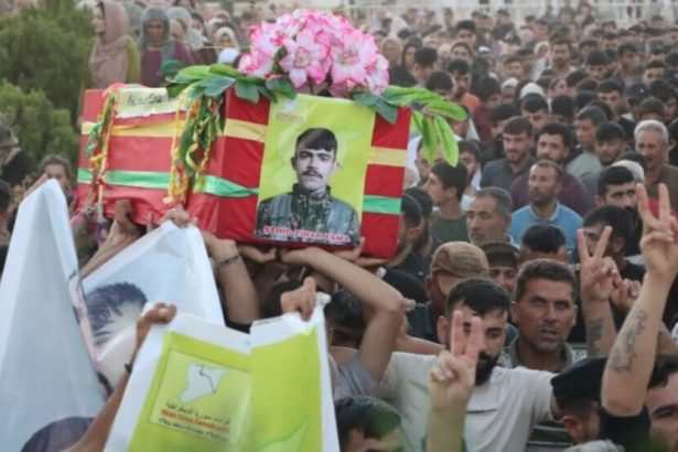 Cenazeyê şervanê QSD’ê Zinar Aşmê yê 13’ê Îlona 2025’an de di encama qezaya leşkerî de li Kobanê şehîd bûbû, Li Pakrewangeha Şehîd Dîcle hat veşartin.