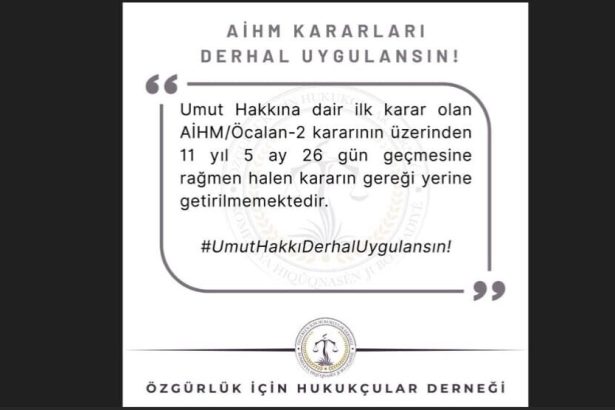 Beriya rûniştina "Mafê Hêviyê" ya ku dê li Komîteya Wezîran a KE’yê were lidarxistin, OHD'ê li ser medyaya dîjîtal hashtaga "#RighttoHopeImmediatelyImplemented!" da destpêkirin û daxwaza azadiya fizîkî ya Rêber Apo…