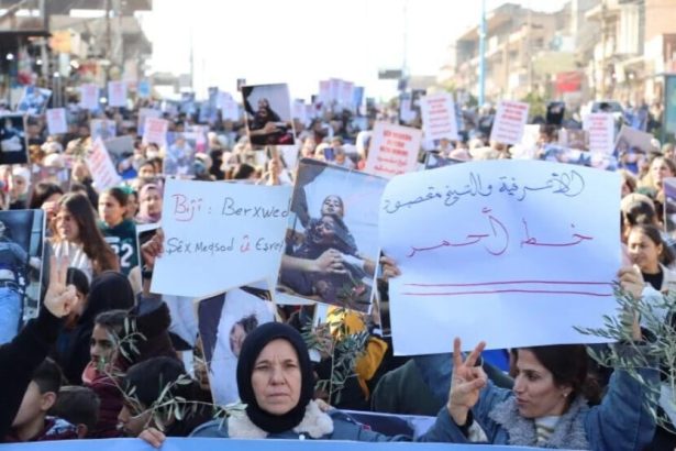 Li Kantona Cizîrê bi hezaran kes ji bo piştgiriya bi berxwedana li taxên Şêxmeqsûd, Eşrefiyê û Benî Zêd ên Helebê meşiyan.