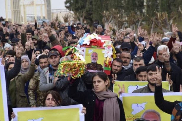 Xelkê Dirbêsiyê û koçberên Serêkaniyê cenazeye şervanê QSD’ê şehîd Hisên Xedîca spart axê.