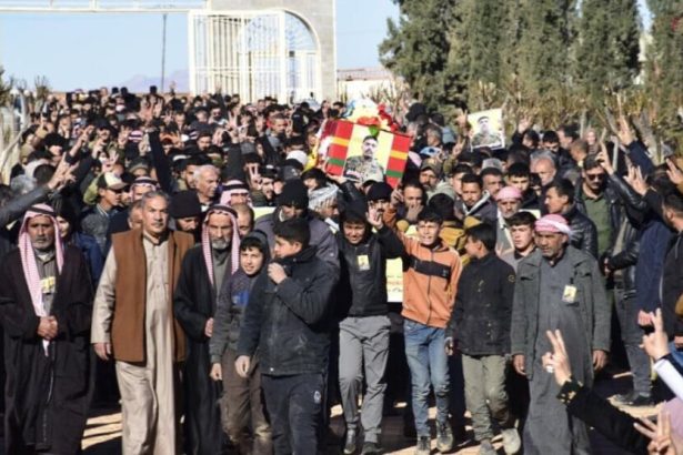 Cenazeyê şervanê QSD’ê şehîd Şiyar Dirbêsiyê li Pakrewangeha Şehîd Rustem Cûdî hate veşartin.