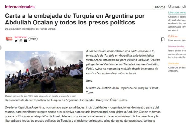 Partiya Karkeran a Arjantînê (Partido Obrero) ji rûpelên web’ê ya komisyona têkiliyên navneteweyî tevlî kampanyaya “Em dixwazin biçin serdana Abdullah Ocalan” bû.