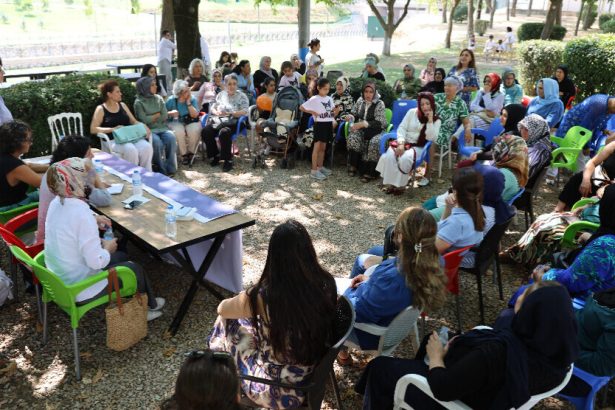 Berdevka Meclisa Jinan a DEM Partiyê Halîde Turkoglû, Endama Koordînasyonê Gulbahar Gunduz û endamên Meclisa Jinan a Bursayê di çarçoveya "Di avakirina aştî û civaka demokratîk de hevdîtina jinan" de…