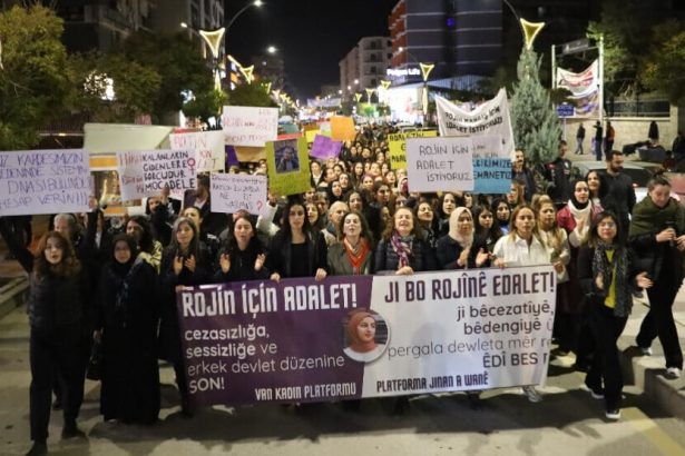 Jinên Wanê ku di salvegera mirina bi guman a Rojîn Kabaîş de bi daxwaza edaletê daketin qadan, wiha gotin, “Em ê vê têkoşînê ji bo Rojînê, ji bo hemû jinên…