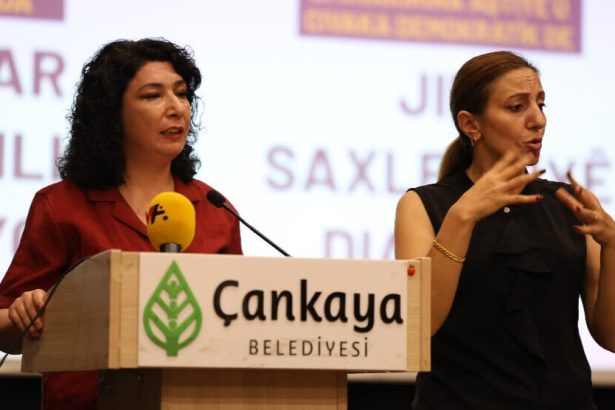 Berdevka Meclîsa Jinan a DEM Partiyê Halîde Turkoglu got, “Îro ew roj e ku em qadên xwe yên têkoşînê bêhtir bi rêxistin bikin û van qadên têkoşînê bi têkoşîna xwe…