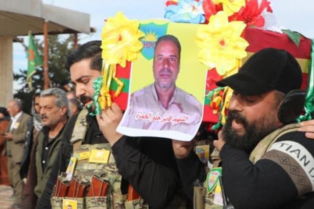 Şervanê QSD'ê Hebûn Rojava (Ebdulkerîm Biro) û Endamê Hêzên Parastina Civakî (HPC) Fayîz El hemze li Şehîdgeha Şehîd Dijwar bi merasîmekê hatin veşartin.