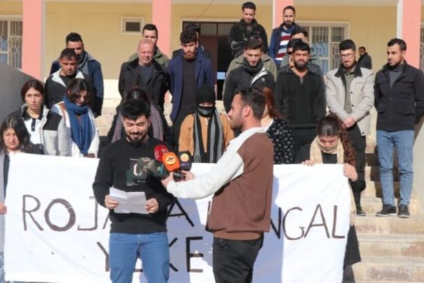 Mamosteyên Saziya Perwerde û Ziman a Şengalê piştgiriya xwe ya ji bo gelê Rojava nîşan dan û gotin, "Rojava xeta me ya sor e."