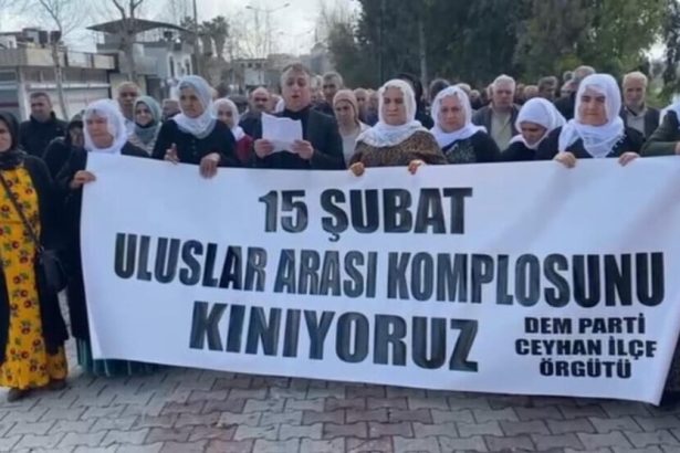 Li navçeya Ceyhan a Edeneyê, Rêxistina Navçeyê ya DEM Partiyê bi daxuyaniyeke çapemeniyê komploya navneteweyî ya 15'ê Sibatê şermezar kir.