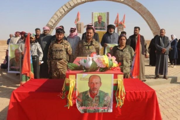 Cenazeyê şehîdê QSD'ê Ehmed Necî El Xelef li Şehîdgeha Dêrazorê bi merasîmekê hate veşartin.