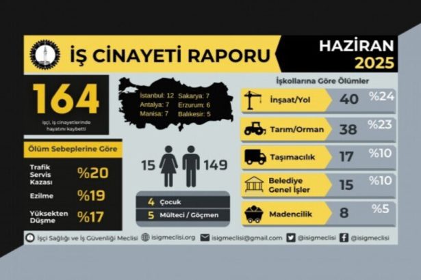 Meclîsa Ewlekariya Kar û Tenduristiya Karkeran (ÎSÎG) rapora mirina li ser kar a Hezîrana 2025'an a li Tirkiyeyê eşkere kir.