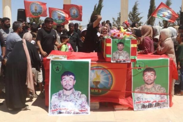 Cenazeyê şervanê Hêzên Komandos ên QSD’ê Elî Mihemed Ehmed ku 1’ê Tîrmehê li Eyn Îsayê li ser erka xwe şehîd bûbû, îro ji aliyê bi sedan kesî ve hat veşartin.