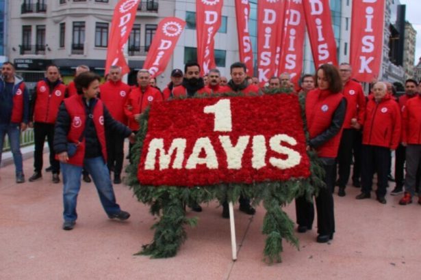 Heyeta Konfederasyona Sendîkayên Karkerên Şoreşger (DÎSK) li gel qedexe û dorpêça polîsan jî ji bo 1'ê Gulanê Cejna Karkeran çeleng danî ber Bîrdariya Komarê ya li Taksîmê.