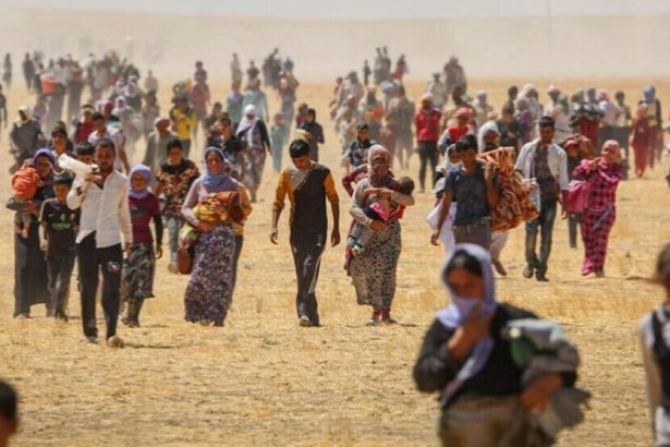 Xelkê Şengalê di salvegera Fermana 3’yê Tebaxa 2014’an de, berê xwe da Çiyayê Şengalê û qurbaniyên qirkirinê bi bîr anî.
