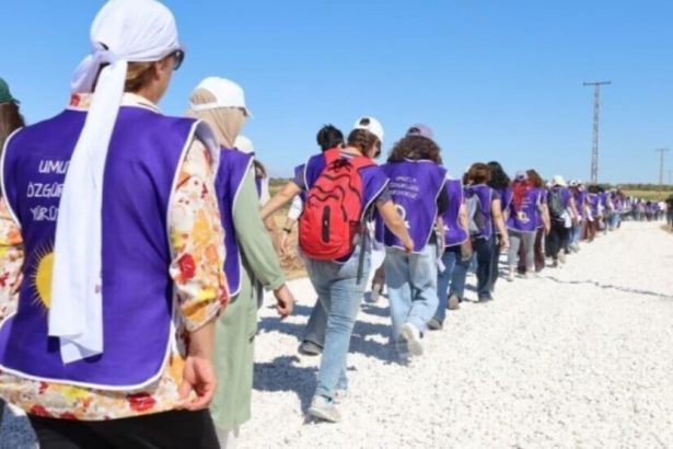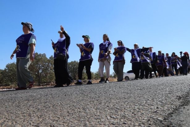 Jinên ku ji bo azadiya fîzîkî ya Rêber Apo ji Amedê ber bi Enqereyê ve dimeşin, gihîştin Amarayê. Jinan xwestin, êdî mafê hêviyê bi cih bê anîn û Rêber Apo…