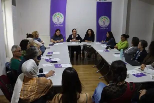 Hevseroka Giştî ya Partiya DEM’ê Tulay Hatîmoguları, Parlamentera Stenbolê Ozgul Saki û endamên Koordînasyona Jinan li Stenbolê bi rêxistinên jinan re hatin ba hev.