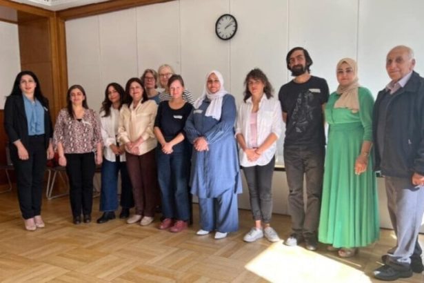 Şandeya Jinan a Bakur û Rojhilatê Sûriyeyê ku li Ewropayê hevdîtinan dike, li Elmanyayê bi gelek rêxistinên jinan û akademîsyenên Kurd, Îranî û Elman re rûnişt.