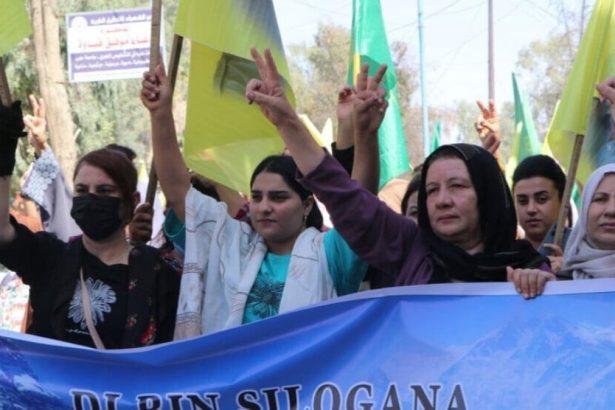 Bi sedan jinên ji Kantona Cizîrê ji bo azadiya fîzîkî ya Rêber Apo li Hesekê meşiyan.
