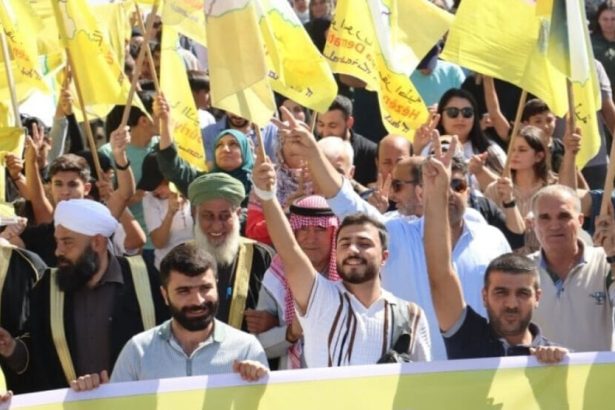 Xelkê kantona Tebqayê û kesên ku ji Efrîn û Şehbayê koçber bûne, ji bo piştgiriya Hêzên Sûriyeya Demokratîk (QSD) meşiyan.