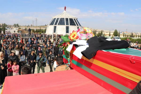Şêniyê Kantona Firatê, sazî û dezgehên girêdayî Rêveberiya Xweser, malbatên Şehîdan, ji bo veşartina cenazeyê şervanê Hêzên Sûriya Demokratîk (QSD) şehîd Gelî Kobanê (Mehmûd Hemê) ku dema li ser erka xwe bû şehîd bû, hatin ba hev.