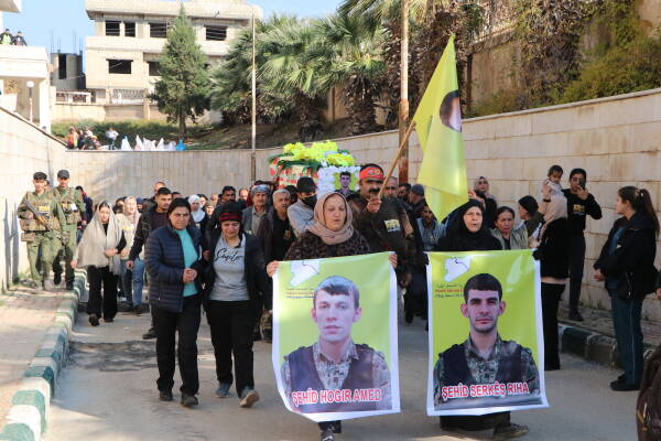 Şêniyên Dêrik, Girkê Legê, Çilaxa yên kantona Cizîrê ji bo şervanên QSD’ê Hogir Amed (Mihemed Can) û Serkêş Riha (Mustafa Kaytan) ên ku di 11’ê Mijdarê de li Hesekê din encama teqîna mayinê de şehîd bibûn, li Şehîdgeha Xebat Dêrik hatin ba hev.