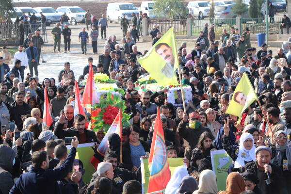 Cenazeyên her du şehîdan bi tilîliyên dayikan û dirûşmên “Şehîd namirin” hatin veşartin.