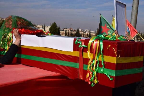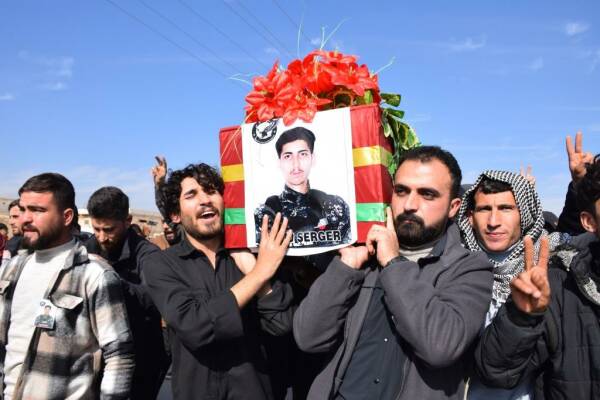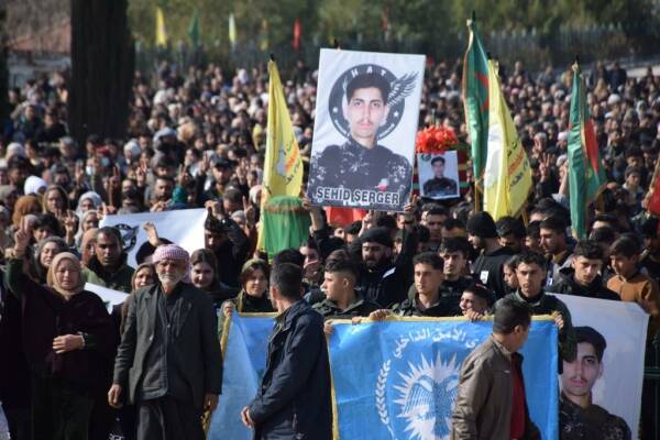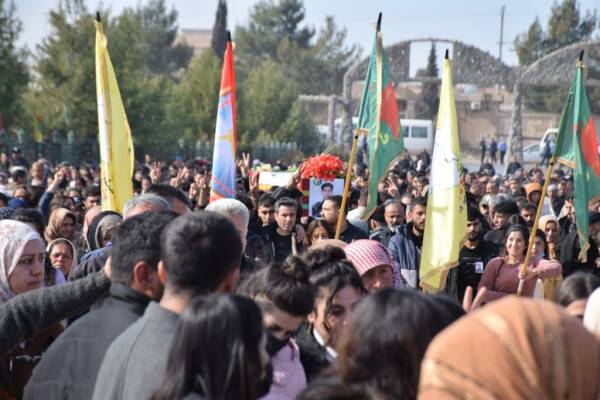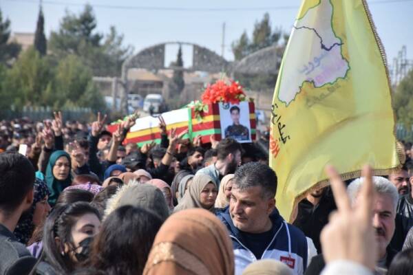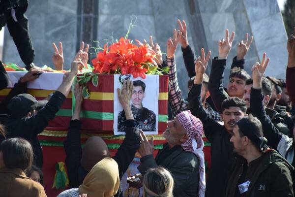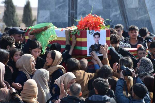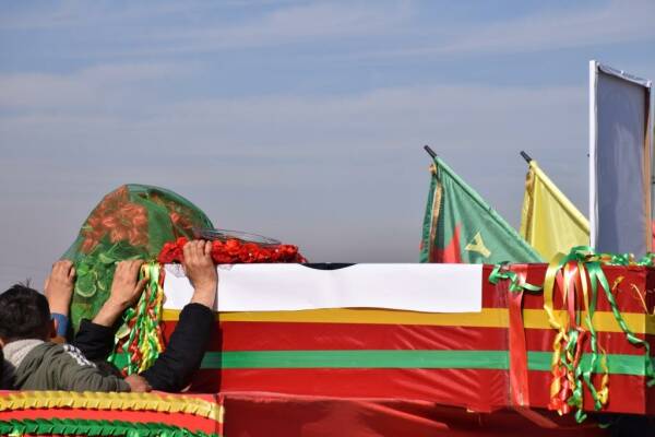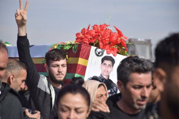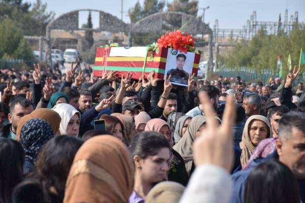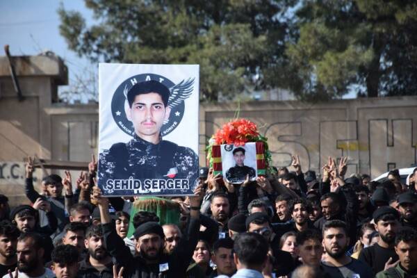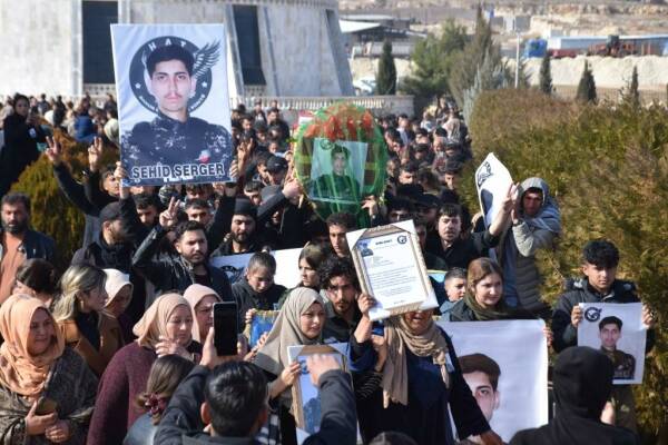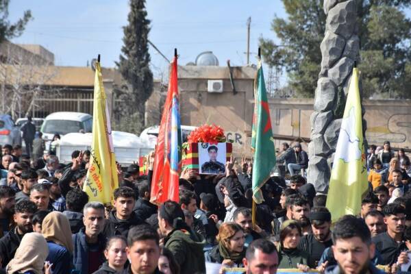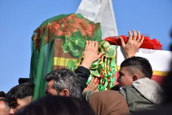 Xelkê kantona Firatê endamê Hêzên Antî Terorê (HAT) ên Ewlekariya Hundirîn Şerger (Şiyar Bozan) ku di 2’yê Sibatê de li Pira Qereqozaxê şehîd bû bi merasîmeke girseyî li Şehîdgeha Şehîd Dîcle ya Kobanê spart axê.