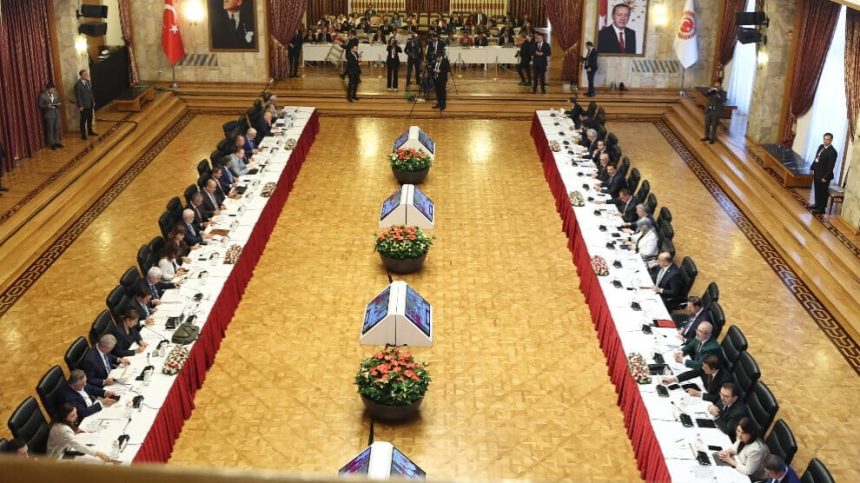 Serokê Meclisê Nûman Kurtulmuş di çarçoveya Pêvajoya Aştî û Civaka Demokratîk de, li Meclisê bi koordînatorên partiyên siyasî yên di Komîsyona Hevgirtina Neteweyî, Xwişk-Biratî û Demokrasiyê de cih digirin re civiya.