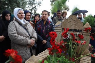 Hevseroka Konfederasyona Sendîkayên Kedkarên Cemaweriyê (KESK) Ayfer Koçak kesên ku bi rojan e piştgiriyê didin berxwedana Wanê silav kir û got, “Hêza berxwedana we têra serkeftinê dike.”