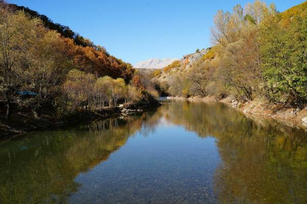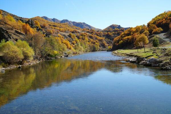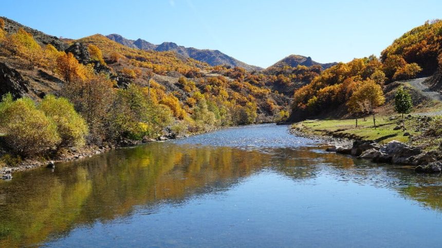 Me wêneyê rengê zer ê li çemê Mûnzûrê şewq dide, amadehiya Geliyê Pîlemûrê ji zivistanê re û heybeta çiyê kişand.