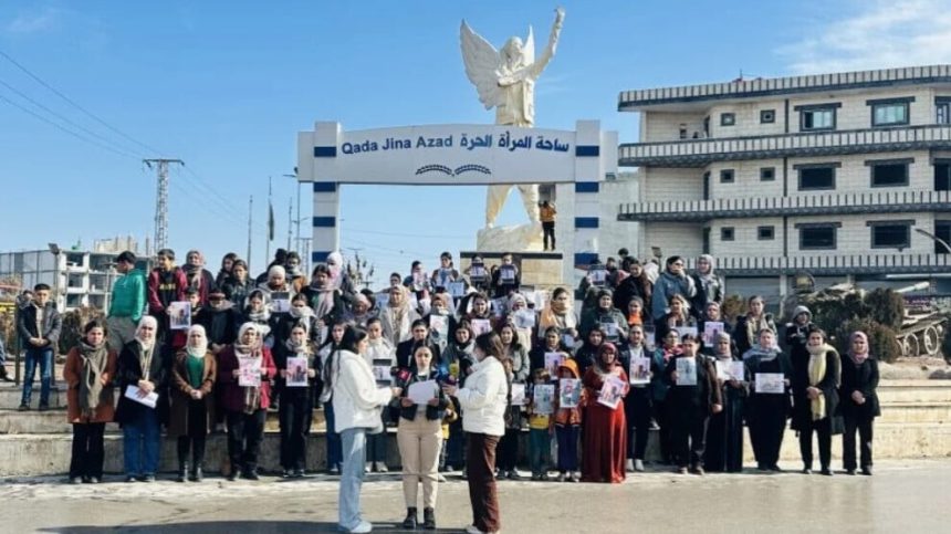 Desteya Jinan a Kantona Firatê li hember daxuyaniyek li Qada Jina Azad a Kobanê bi amadebûna bi dehan da. Daxuyanî ji aliyê endama Kongra Star Cûrî Temî ve hat xwendin.
