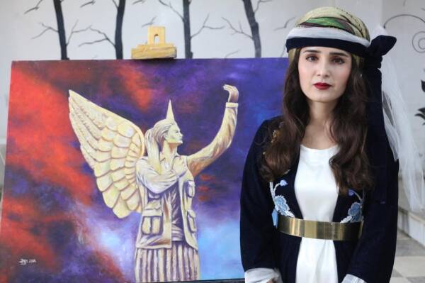 Şêwekara bi navê Fatma Colo jî got min bi rengê jina aştiyê wêneya xwe neqiş kir û got: “Wêneya min li ser aştî, hezkirinê û jina azad hatiye neqişkirin. Di nava wê de jî cil û bergên Kurdî min neqiş kiriye. Di her tabloyê de jî peyamek û hestek cuda heye.”