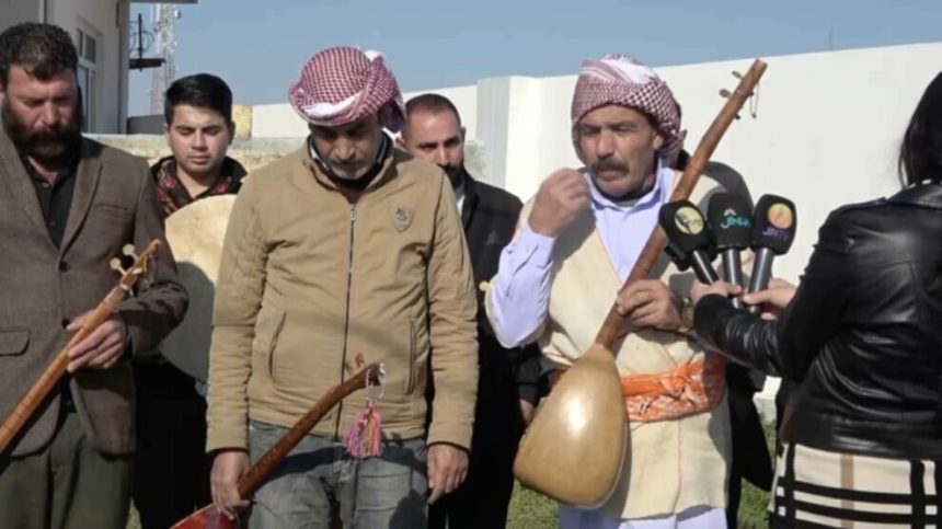 Endamên Kolektîfa Saza Êzî ya Şengalê bi daxuyaniyekê û bi stranên xwe piştgirî dan berxwedana li Rojavayê Kurdistanê.